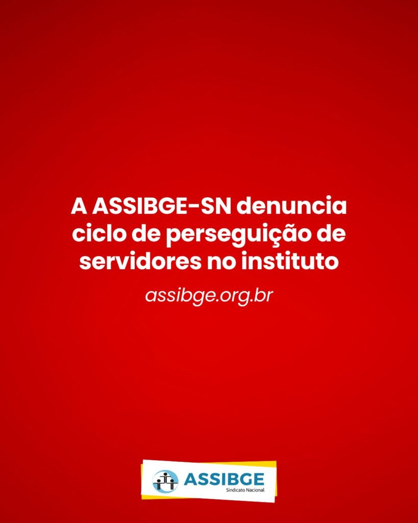 A ASSIBGE-SN se solidariza com as equipes diretamente afetadas, não tolerará uma caça às bruxas dentro dessas áreas e fará tudo o que estiver ao seu alcance para apoiar e defender o IBGE e seus trabalhadores da perseguição imposta pela gestão.