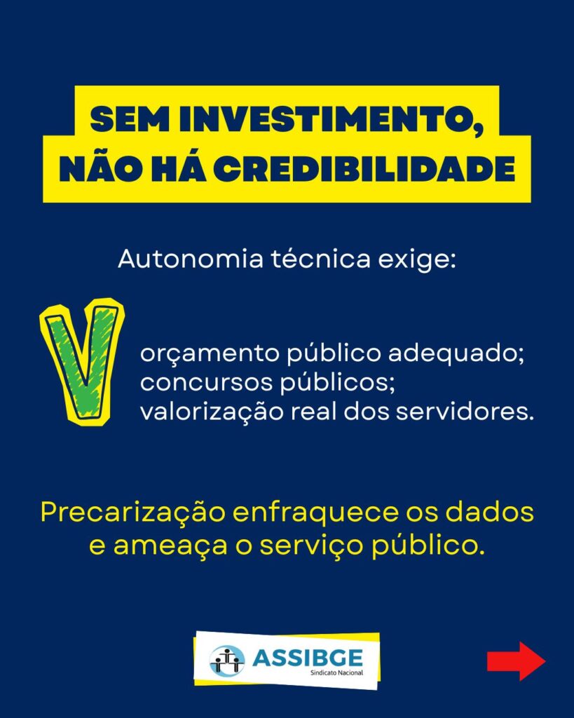 É fundamental destacarmos que a permanência da credibilidade requer investimento. A autonomia técnica exige orçamento público, concursos e valorização real dos servidores. Lutamos contra o sucateamento do órgão, a precarização dos trabalhadores temporários e a defasagem salarial, pois o enfraquecimento da força de trabalho é a porta de entrada para a fragilização dos dados. Somos radicalmente contrários à Reforma Administrativa debatida na Câmara dos Deputados e ao teto de gastos defendido pela elite financeira. É urgente a realização de uma auditoria da dívida pública para estancar a sangria do orçamento público, que é drenado para o setor financeiro, sucateando os serviços públicos destinados à população.