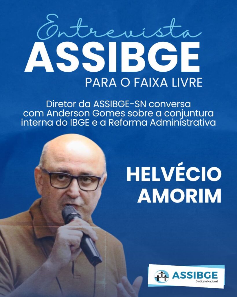 ASSIBGE para o FAIXA LIVRE – conjuntura interna do IBGE e os impactos da Reforma Administrativa 2 de fevereiro de 2026 • Imprensa Helvécio Amorim, diretor da Executiva Nacional da ASSIBGE-SN, conversa com Anderson Gomes sobre a conjuntura interna do IBGE e os impactos da Reforma Administrativa. Assista e compartilhe: