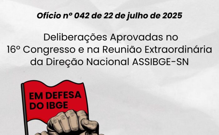 A Executiva Nacional da ASSIBGE-SN vem, por meio desta nota, manifestar seu repúdio aos ataques sofridos por companheiras em fóruns institucionais da categoria, enquanto trabalhadoras e Delegadas de Base. No dia 12 de julho, a […]