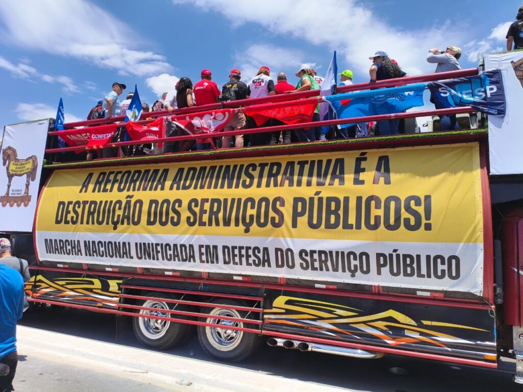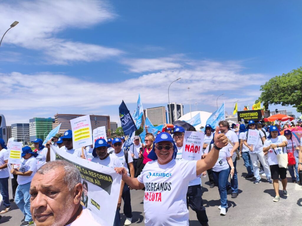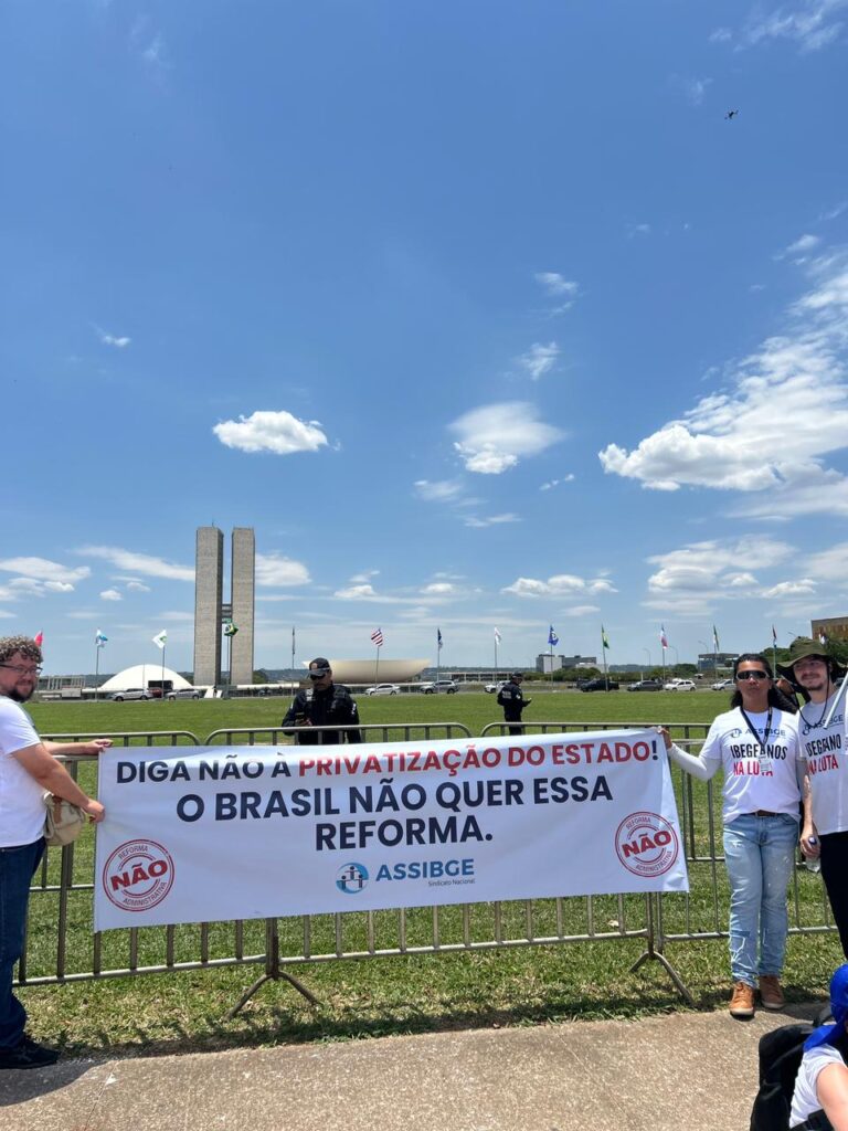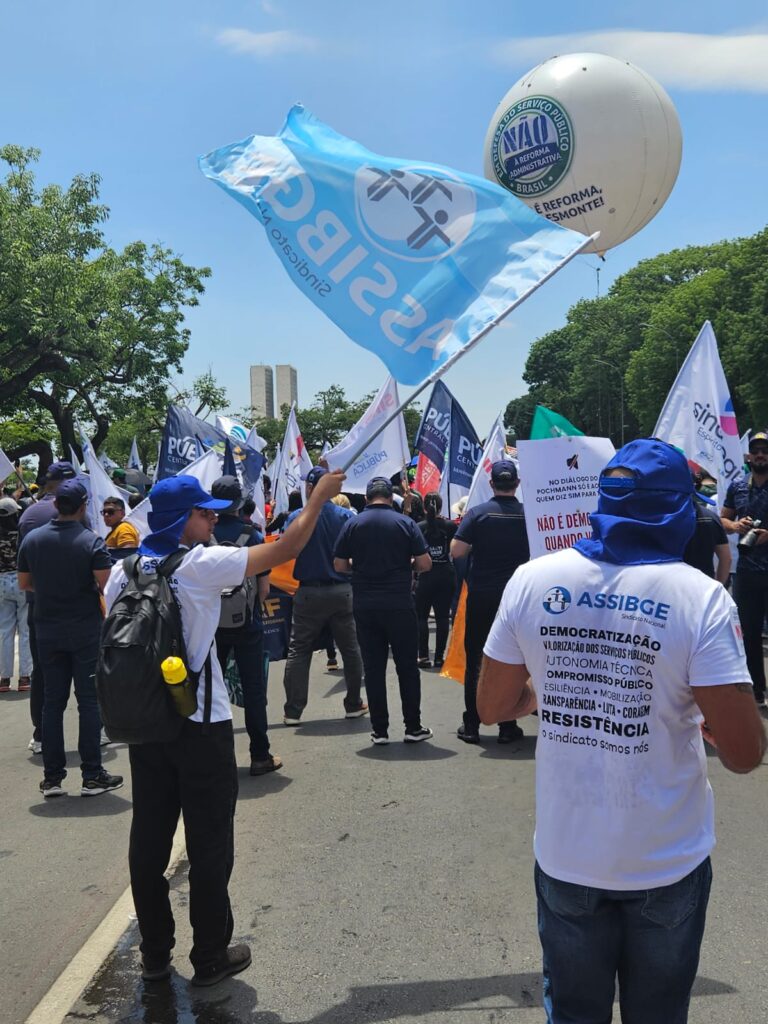 A Marcha Nacional Unificada dos Serviços Públicos contra a Reforma Administrativa foi construída pela ASSIBGE, em articulação com as demais entidades que compõem o Fórum das Entidades Nacionais dos Servidores Públicos Federais (Fonasefe). Nossas caravanas saíram de diversos estados e a Executiva Nacional do sindicato esteve presente e articulou do início ao fim nossa participação na luta. Foram cerca de 40 mil servidores de todo o país em Brasília, unidos, para dizer não à Proposta de Emenda à Constituição (PEC) 38/2025.