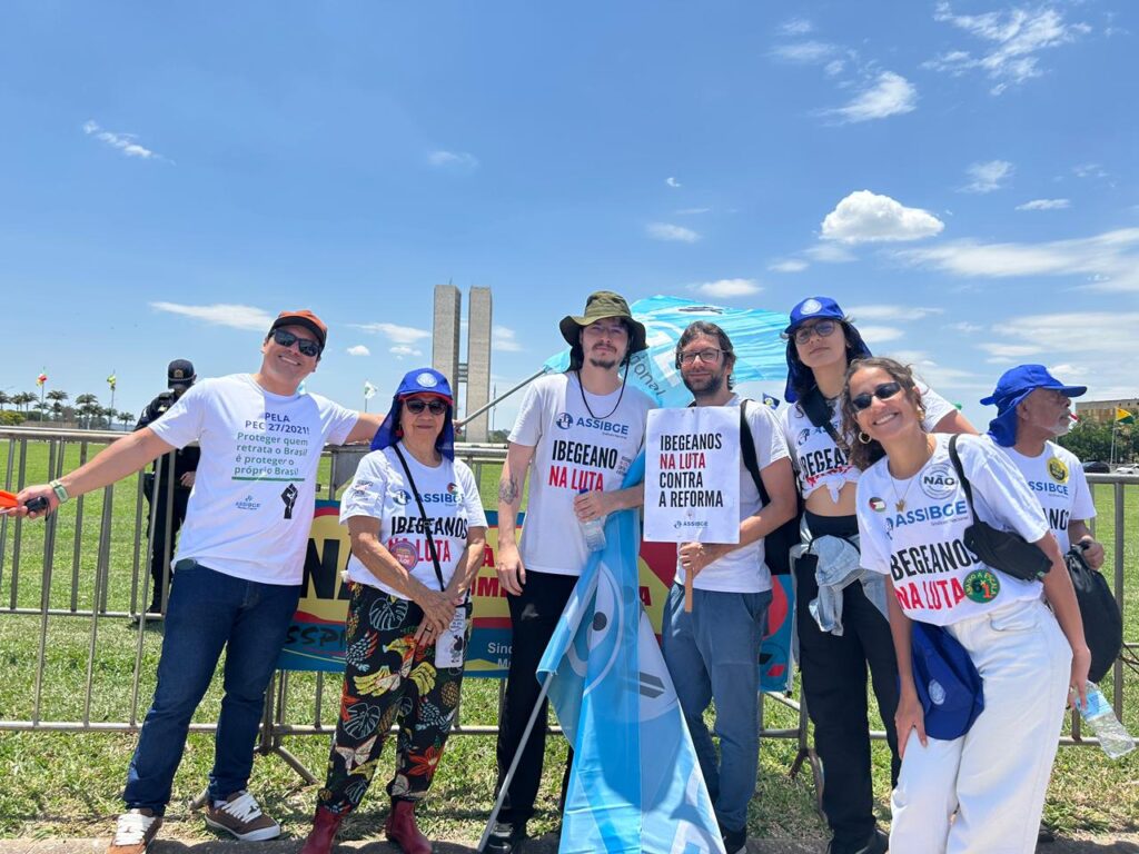 Servidoras e servidores públicos das três esferas, fizeram uma marcha contra a reforma administrativa, na Esplanada dos Ministérios, em Brasília, na manhã de ontem, quarta-feira (29). Os ibegeanos se fizeram presentes em peso, 24 núcleos sindicais e mais de 90 participantes, somos contra a pec mascarada de “reforma”, que ameaça o serviço público, os direitos dos servidores e o próprio papel do Estado brasileiro.