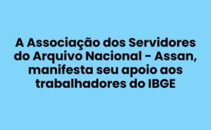 A Associação dos Servidores do Arquivo Nacional – Assan, manifesta seu apoio aos trabalhadores do IBGE, em especial aos servidores da Gerência de Bi […] -