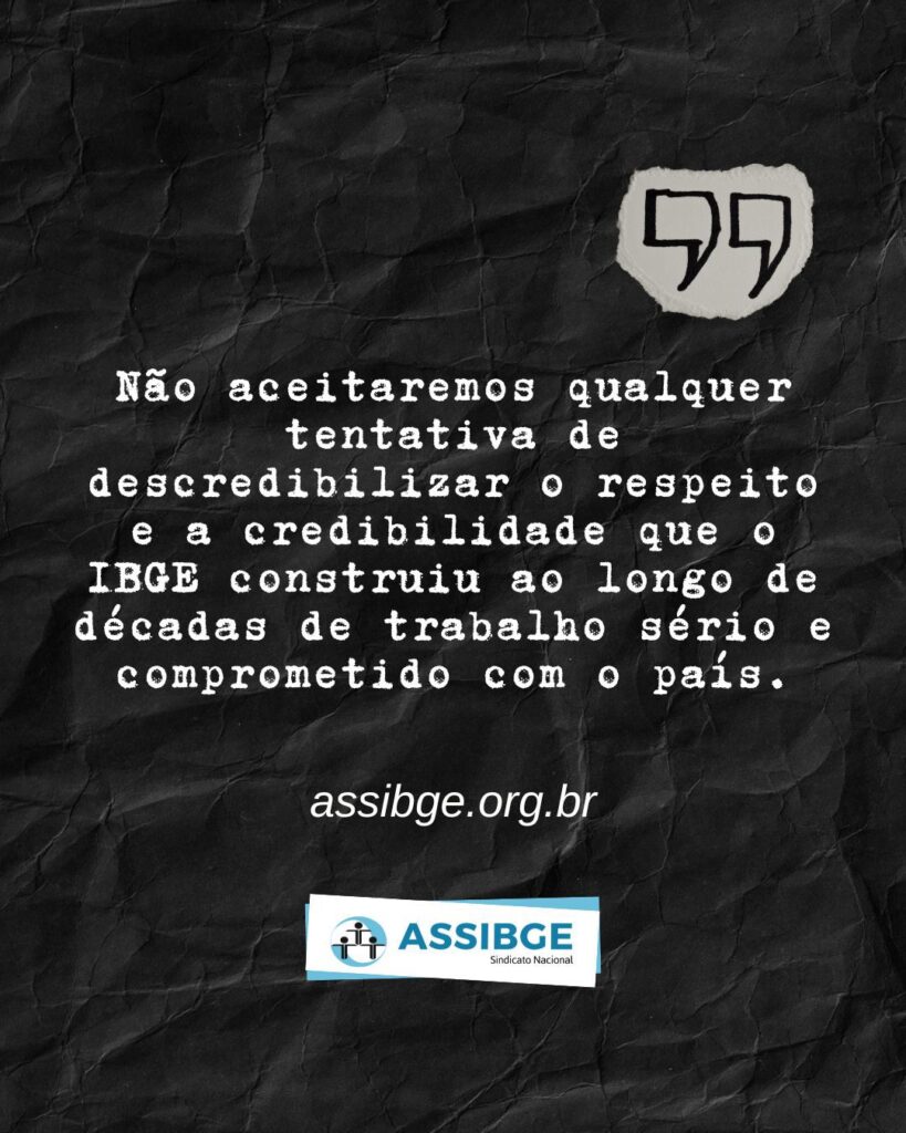 O IBGE construiu ao longo de sua história uma reputação sólida baseada em rigor técnico, independência metodológica e compromisso com a verdade estatística. Esse trabalho é realizado diariamente por milhares de servidores e servidoras que, faça chuva ou faça sol, percorrem cidades, comunidades, áreas rurais e os lugares mais distantes do território nacional para produzir informações essenciais sobre a realidade brasileira.