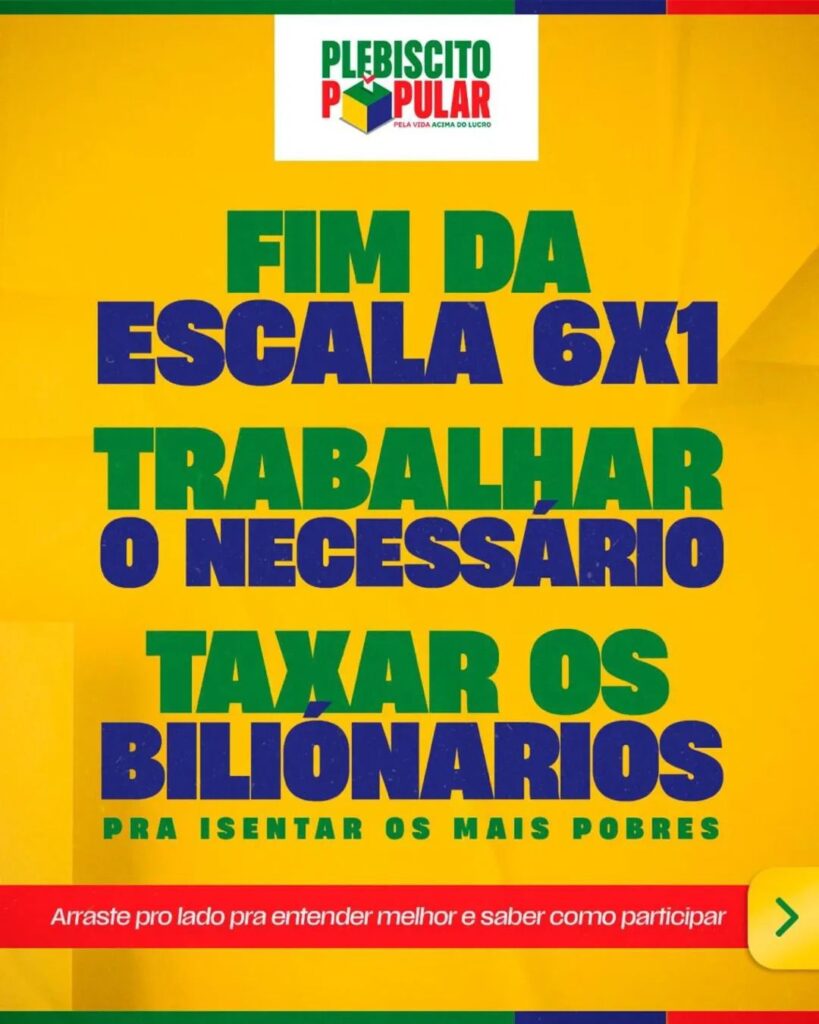 Instagram para acompanhar as datas e onde votar: https://www.instagram.com/plebiscitopopular?igsh=MTl3NmxjZGkzdnR6dA==