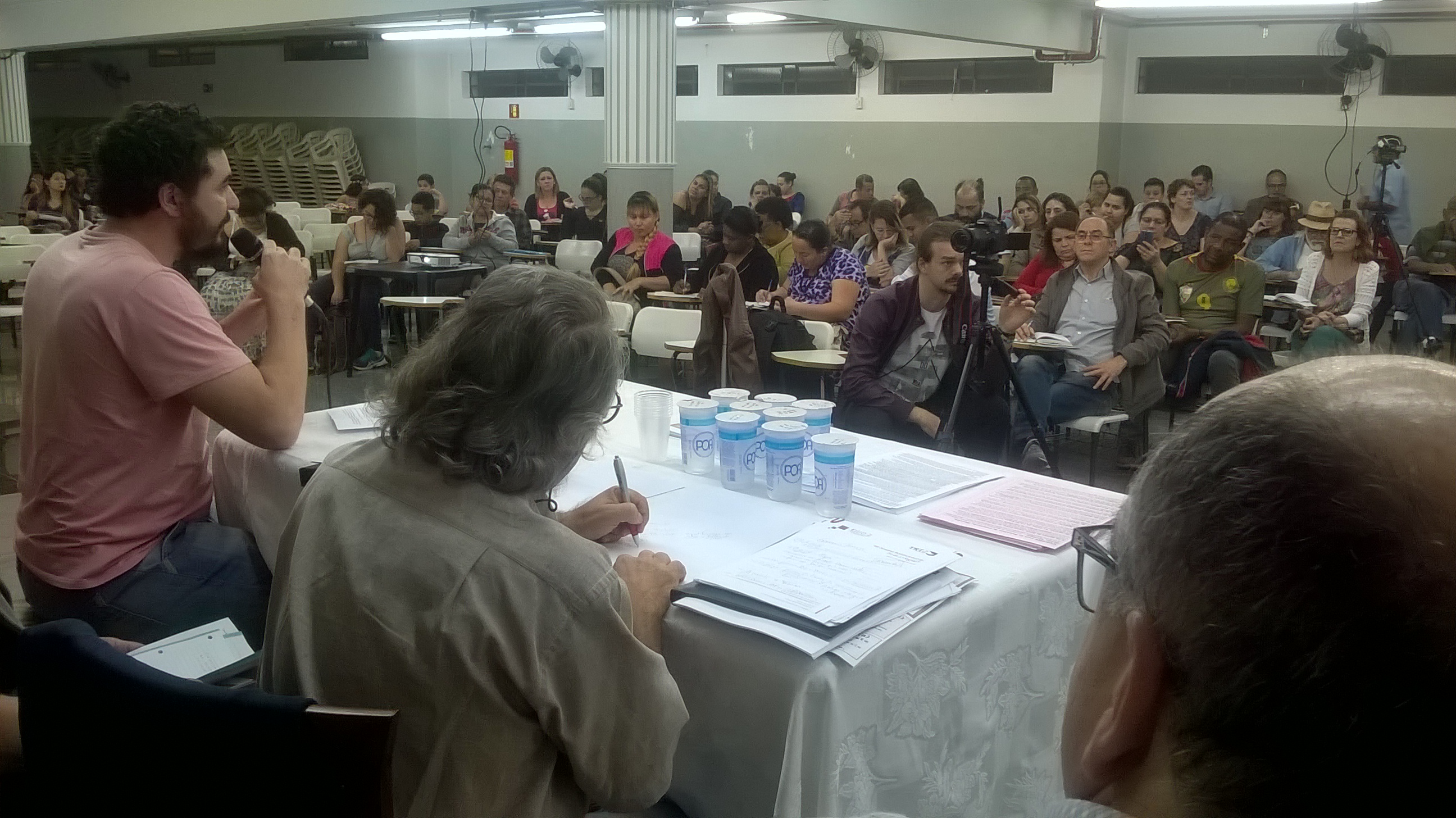 Coerente com o documento elaborado pela ASSIBGE-SN, o companheiro Cássius de Britto fez a primeira exposição, ressaltando que os indicadores sociais e econômicos dos cem dias do governo Temer não apresentam recuperação e que o PLP 257 e a PEC 241 são tenebrosos para a classe trabalhadora. Cássius destacou que “a imagem que não sai das nossas cabeças é aquela da posse de Temer, ao lado de homens brancos, velhos, gente da antiga política. Nenhum negro, nenhuma mulher, nenhum homossexual”.