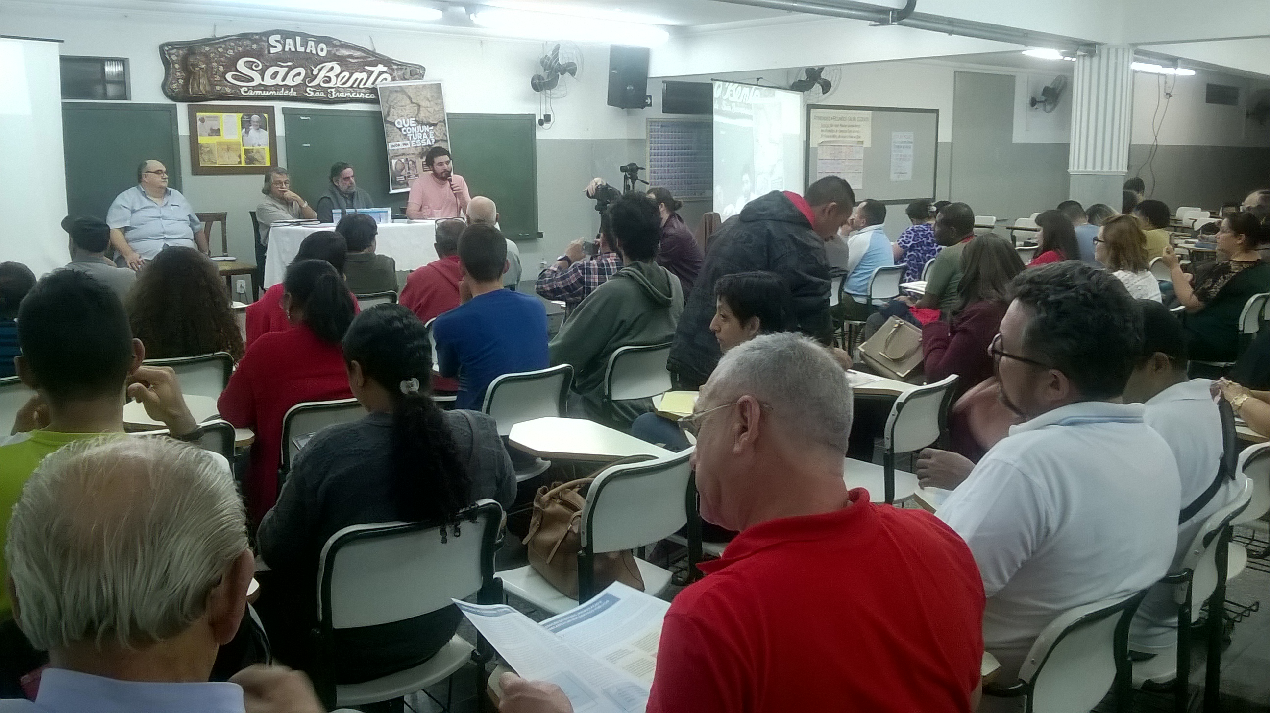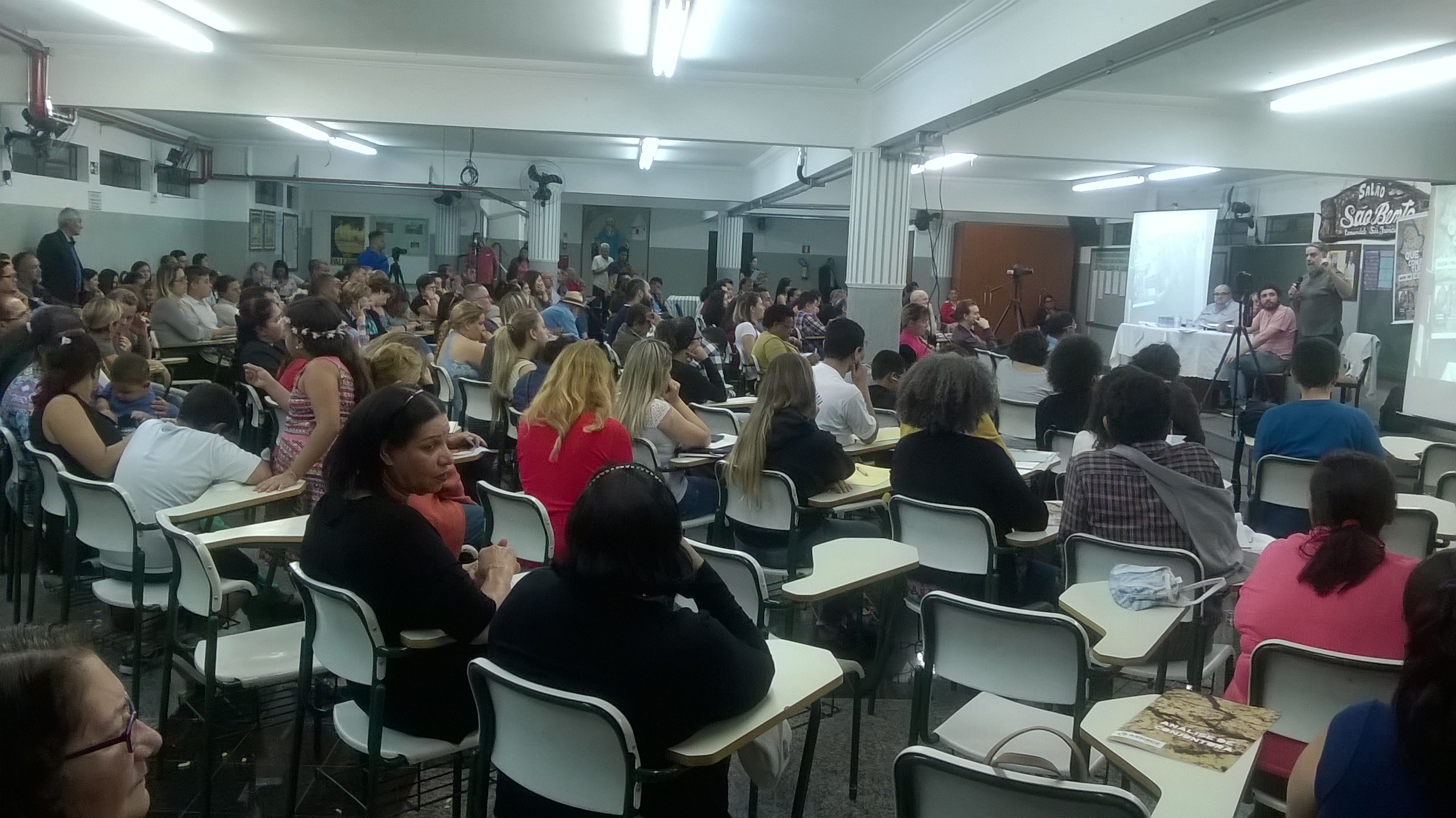 Cerca de 200 pessoas se reuniram na sexta-feira, 26 de agosto, para debater “Que conjuntura é essa?”, iniciativa da ASSIBGE-SN e do Instituto Cultiva, por convite da Escola da Cidadania da ISFA, Igreja de São Francisco de Assis, em Ermelino Matarazzo, Zona Leste da capital paulista. Uma delegação de companheiros de diversos Núcleos e da Executiva Nacional da ASSIBGE-SN participou do evento, que contou com o sociólogo Ricardo Antunes e o economista Cesar Locatelli. Confira as fotos em anexo.