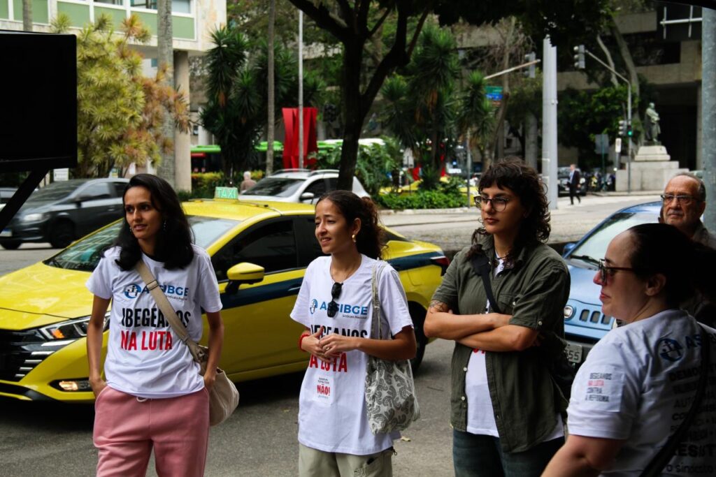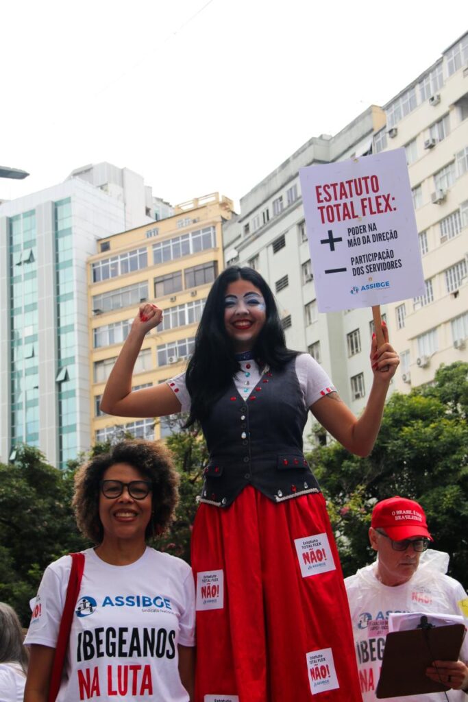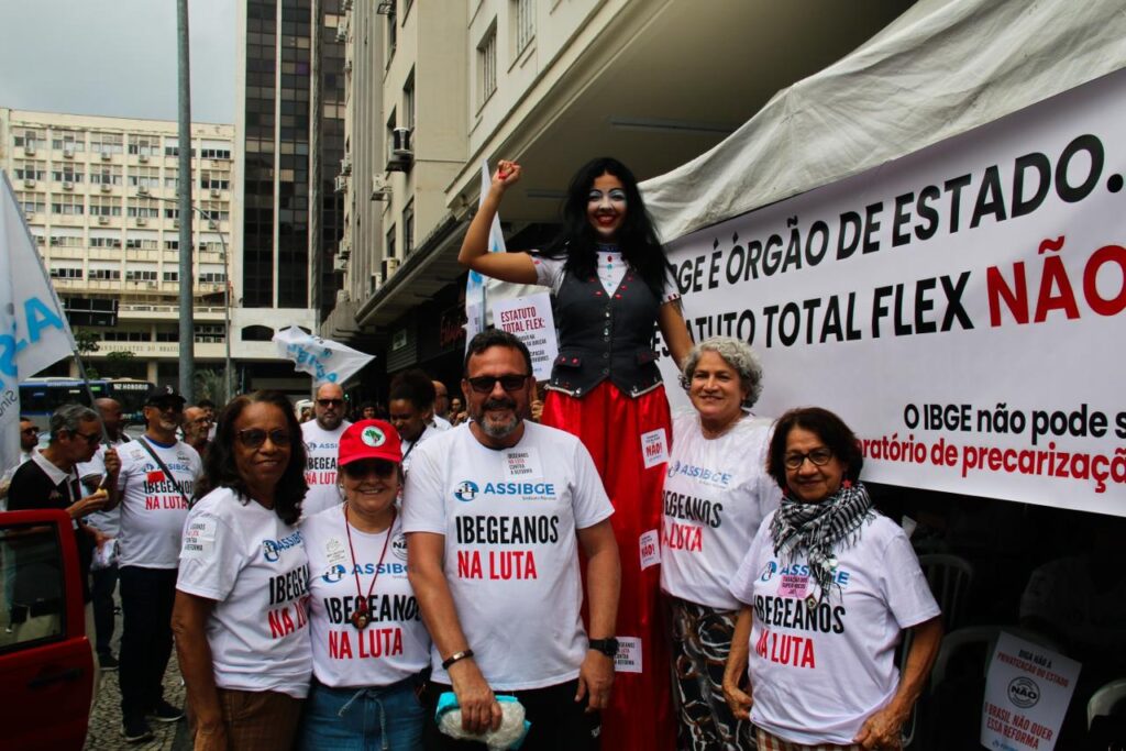 Nossa categoria protestou contra o Novo Estatuto, o sindicato repudia a proposta vinda sem conversa por parte da direção do IBGE, por compreender que ela representa um grave enfraquecimento das áreas técnicas e uma concentração de poder na Presidência do Instituto, ferindo os princípios de gestão participativa e transparência que devem orientar a instituição.